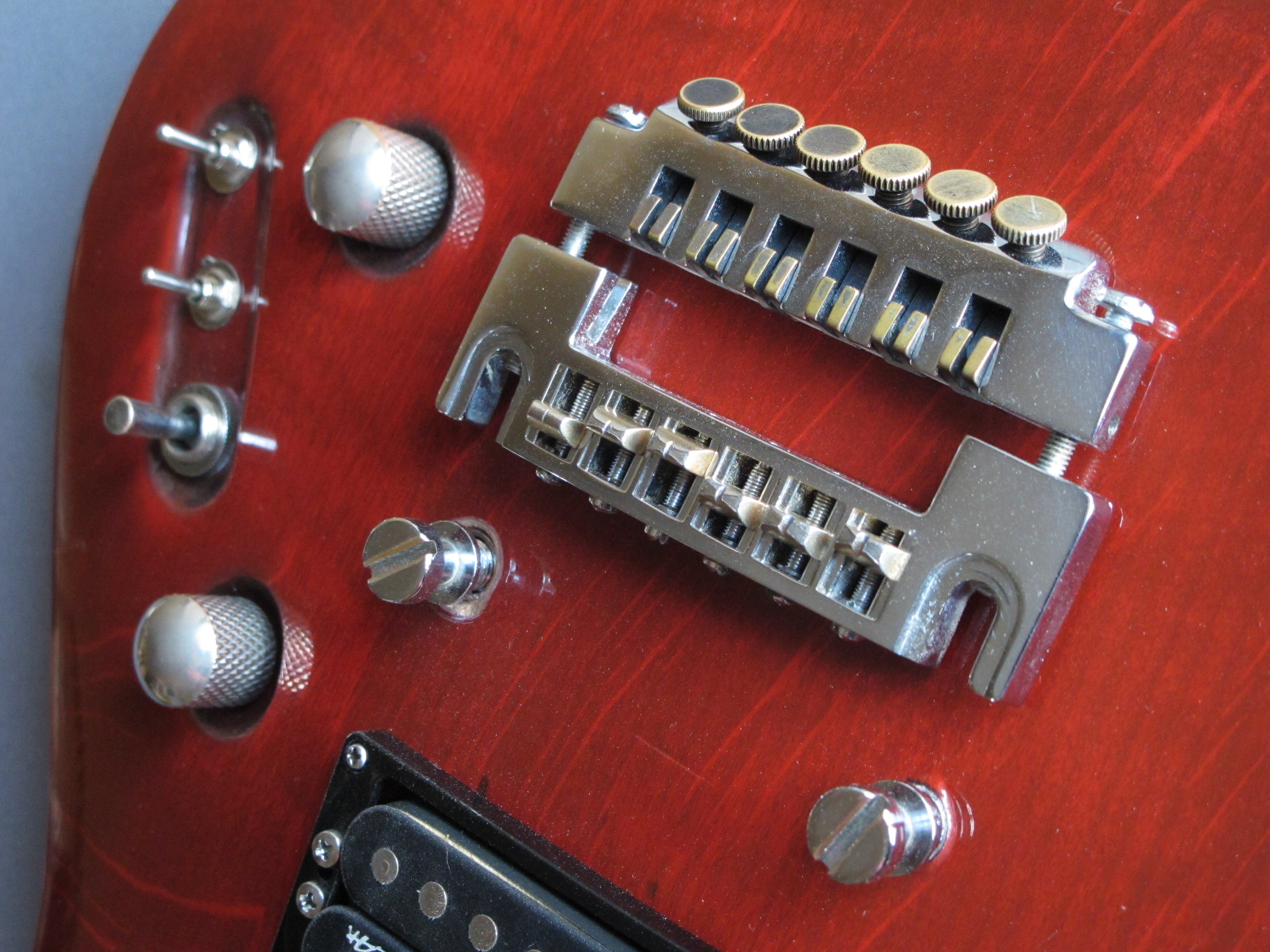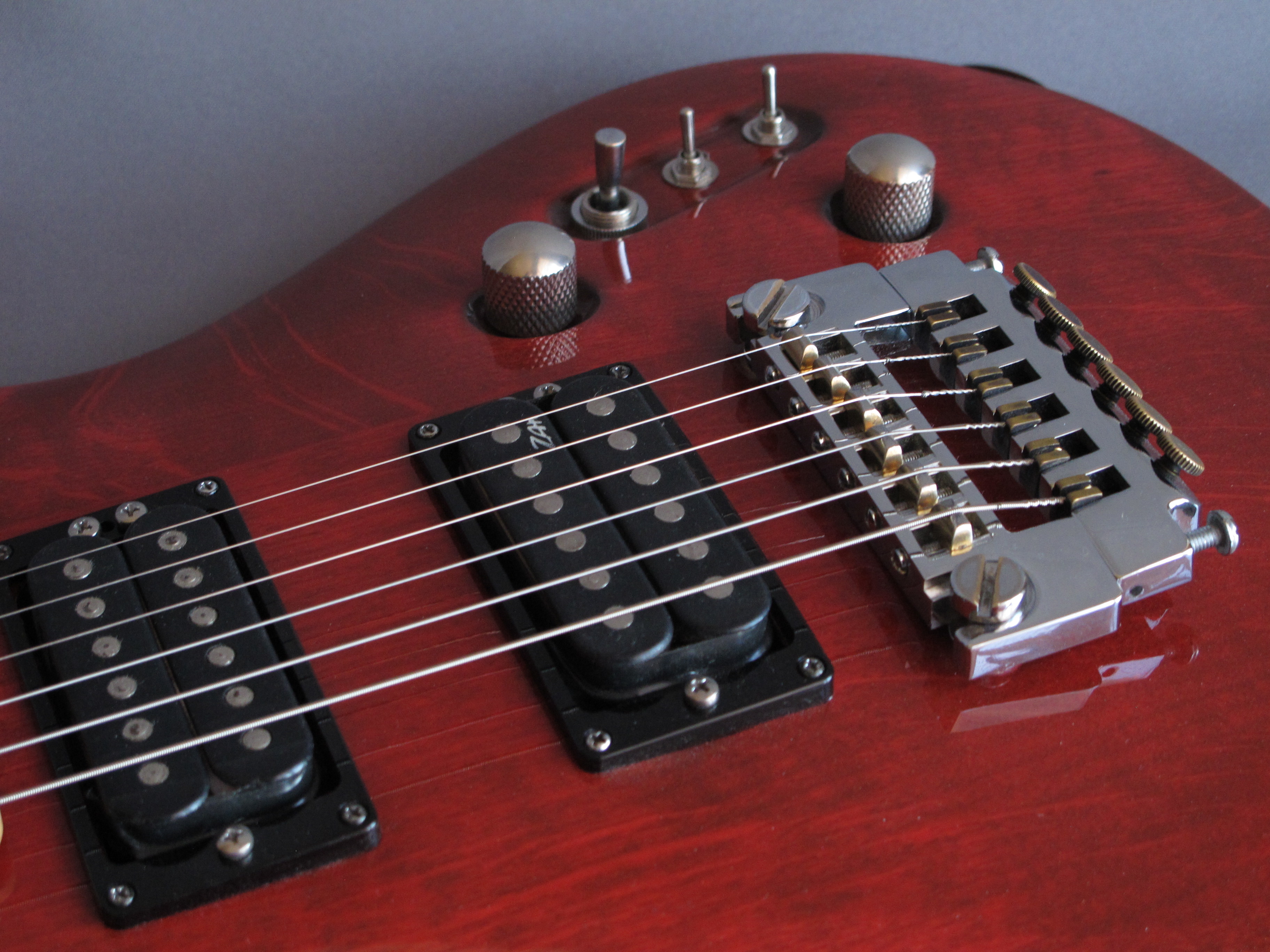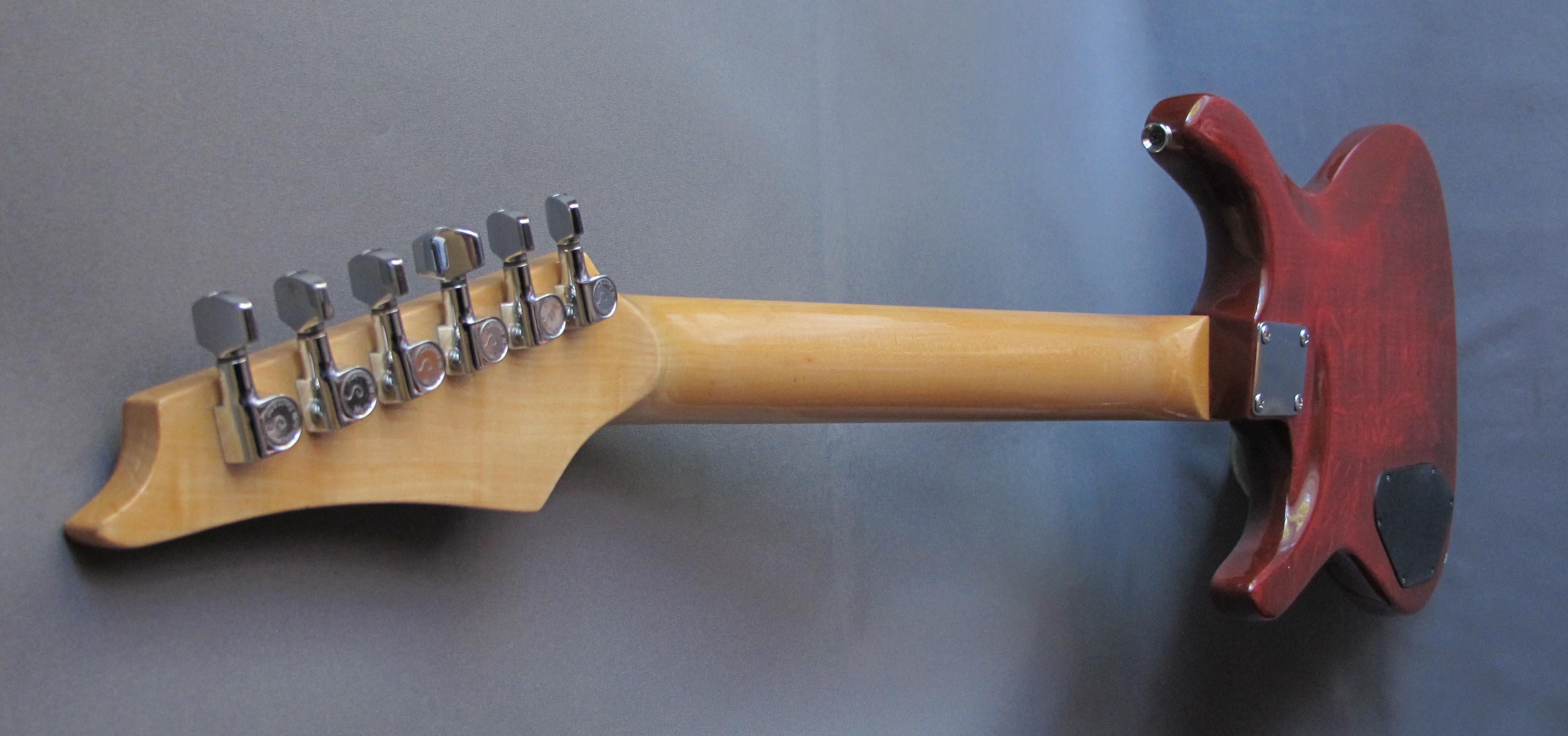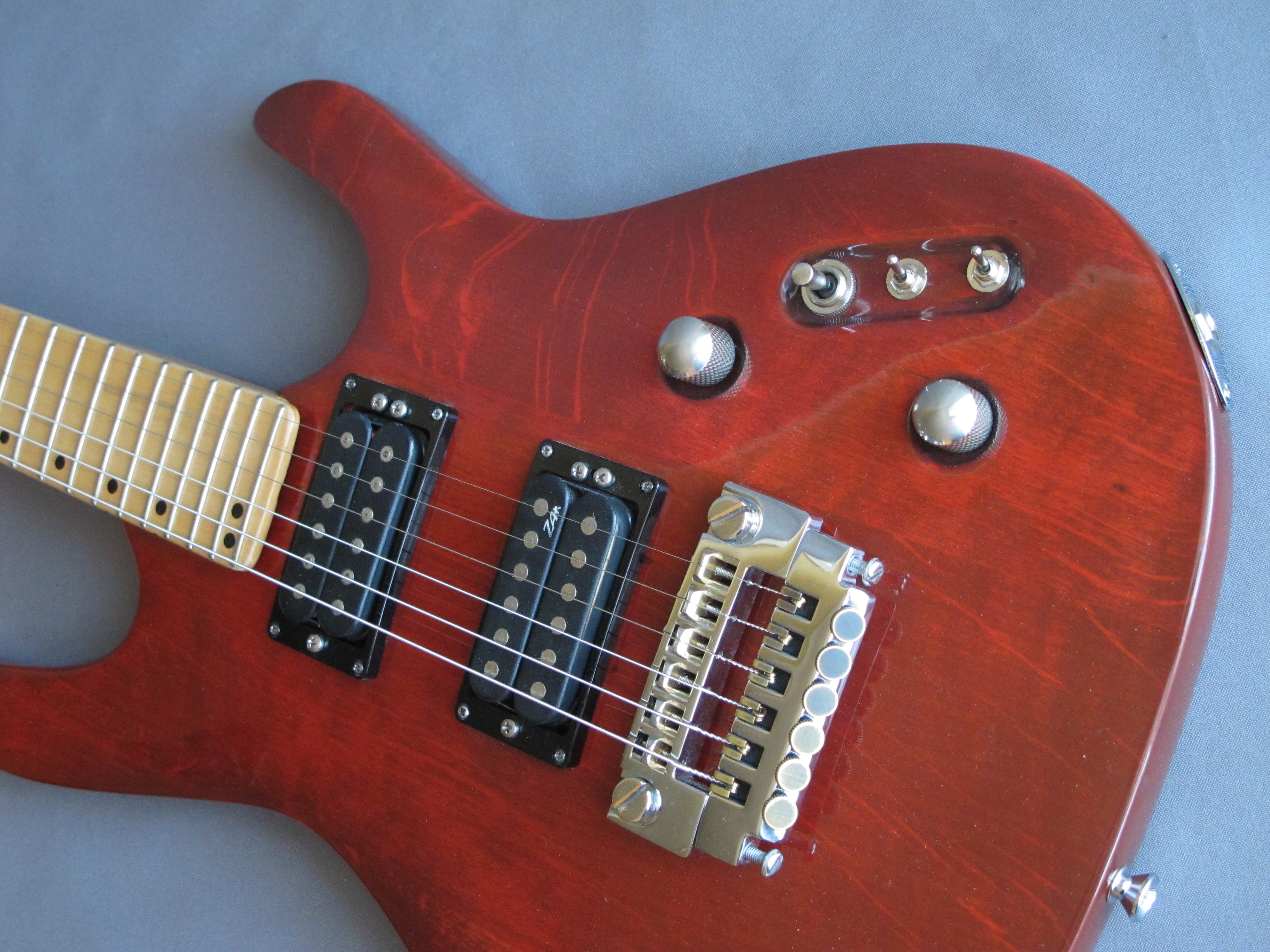 Zgrabny Mayones z klonową szyjką z maszynkami Schallera i 24-progową, klonową podstrunnicą, przykręconą do jesionowego korpusu z wypukłym topem, dwoma humbuckerami ZAK z rozłączanymi cewkami oraz zintegrowanym mostkiem/strunociągiem/mikrostrojnikiem Schallera.